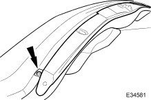 11. Remove and discard retaining stud from RH end of header seal, lift rear edge of seal and slacken and remove latch cover RH securing screw.