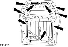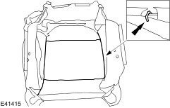 18. Remove and discard the front seat cushion cover retaining staples.