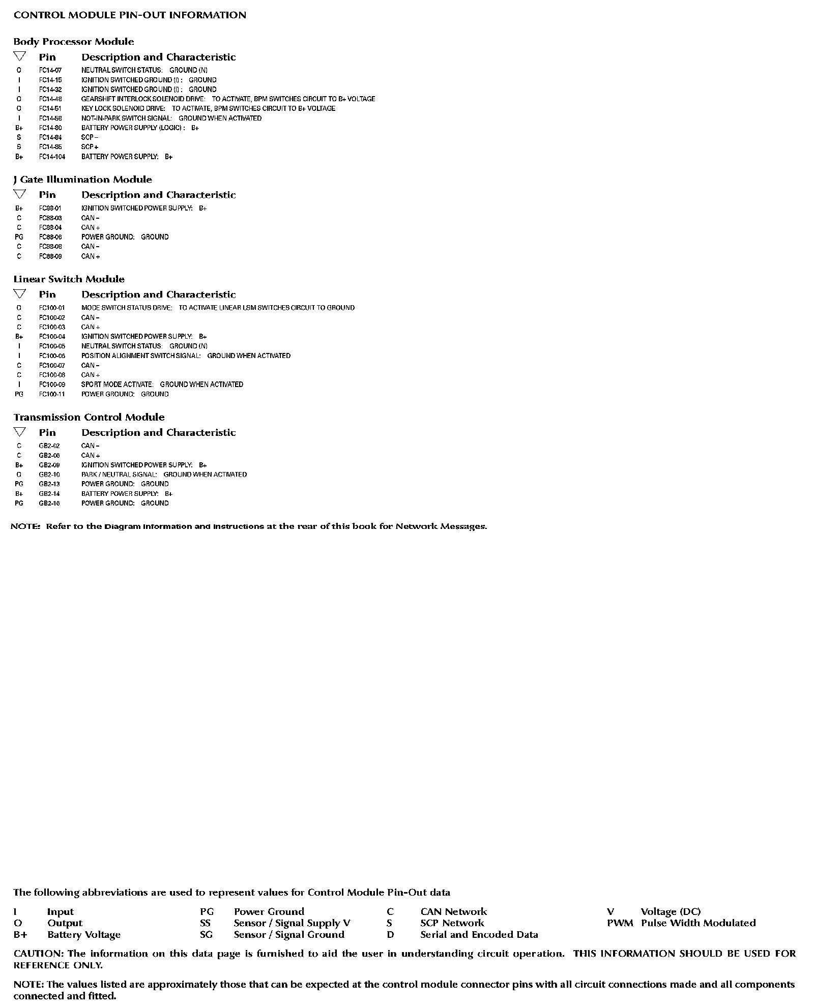Connector Views: The connector views/pin-outs for the Control Modules depicted within these diagrams can be found at the vehicle level connector views. Connector Views