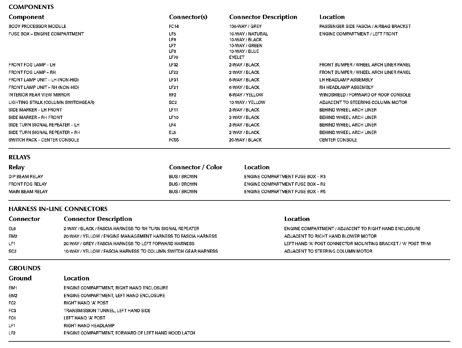 Locations: The location views for Ground Points, In-Line Harness Connectors, Harnesses, and Control Modules depicted within these diagrams can be found at Vehicle/Locations. Locations