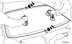 12. Fit lifting handles and with assistance, carefully position windshield in aperture aligning glass with body markings and press firmly into place.