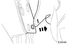 34. Withdraw the front bow rail from the headlining piping, tension cords and straps.
