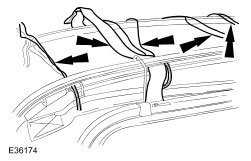 1. Place headlining in vehicle, positioning and seating rear of lining in rear bow rail slot.