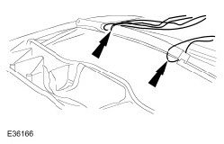 37. Withdraw headlining rear edge flange from retaining slot in rear bow rail and position rear tension cables for disconnection.