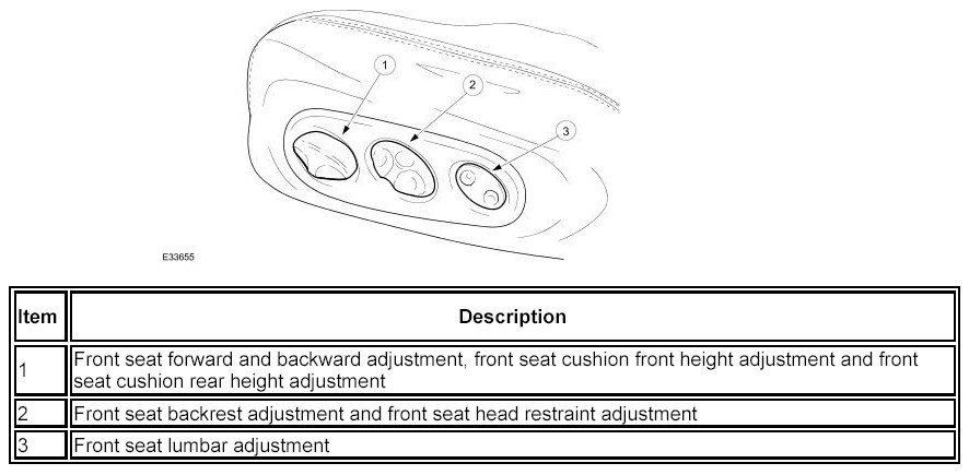 The front seat control switches are installed in the outboard side of both the driver and passenger front seats.