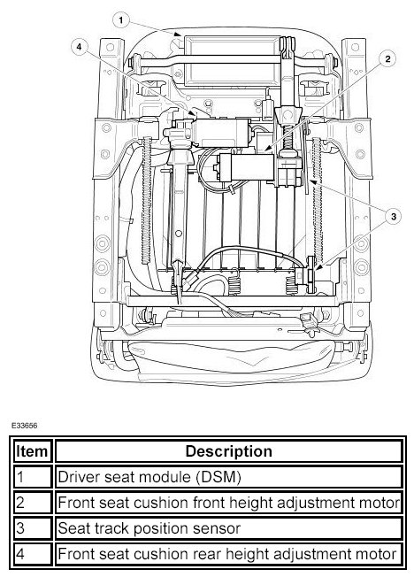 The driver and passenger front seats, although almost identical, have some unique components. The front driver seat has a seat position sensor and the front passenger seat has a weight sensing system. In both instances the components form an integral part of the air bag supplemental restraint system (SRS).