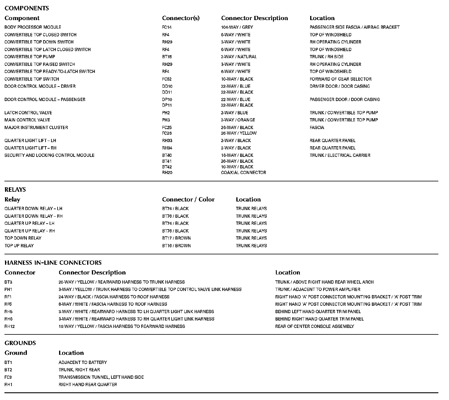 Locations: The location views for Ground Points, In-Line Harness Connectors, Harnesses, and Control Modules depicted within these diagrams can be found at Vehicle/Locations. Locations