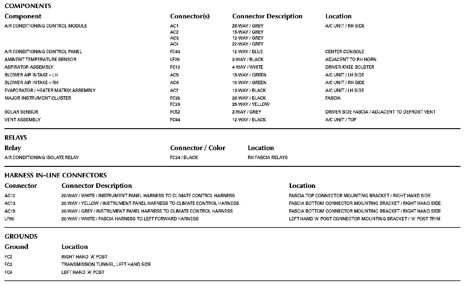 Locations: The location views for Ground Points, In-Line Harness Connectors, Harnesses, and Control Modules depicted within these diagrams can be found at Vehicle/Locations. Locations