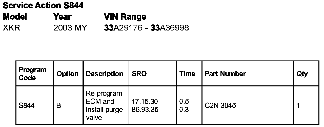 Warranty claims must be submitted quoting program code S844 together with the relevant option code from the table.