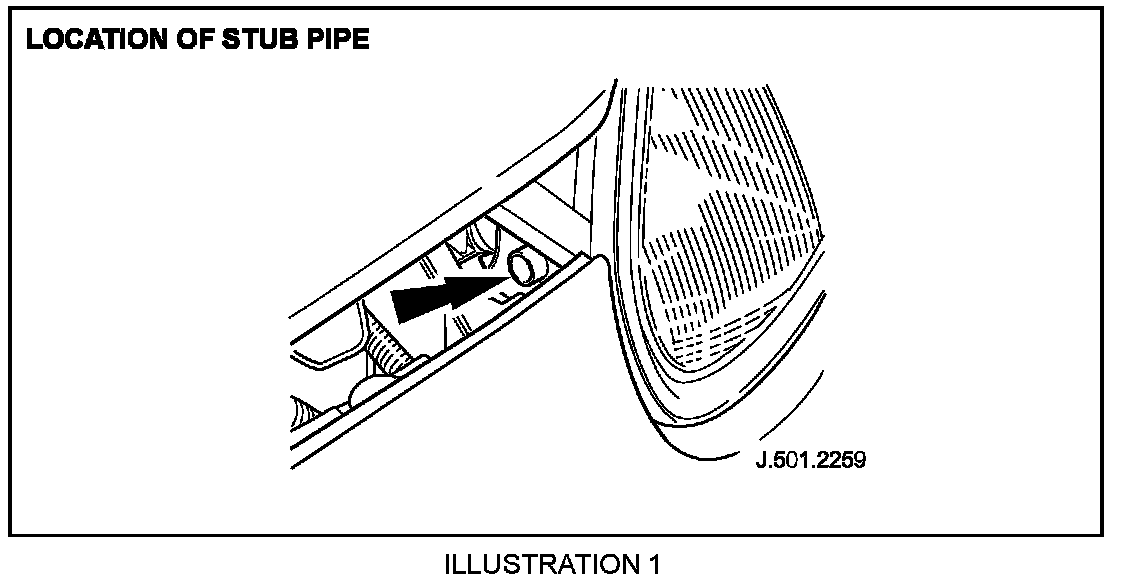 1. Inspect headlamp to see if stub pipe is present (Illustration 1).