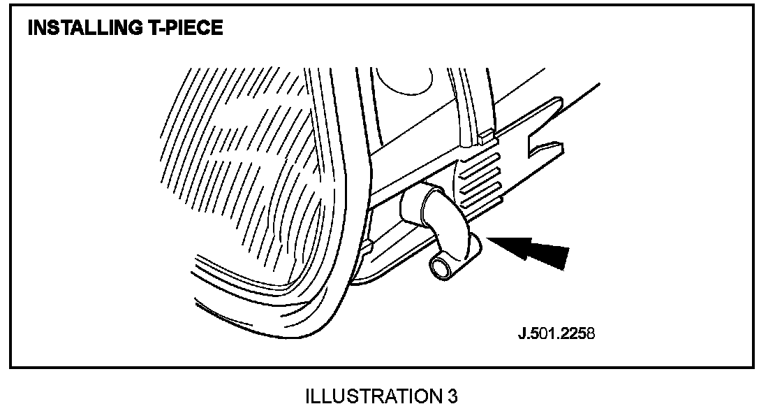 In case of a customer complaint of condensation build-up within the headlight assemblies, install the a T-piece vent pipe, following the procedure below.