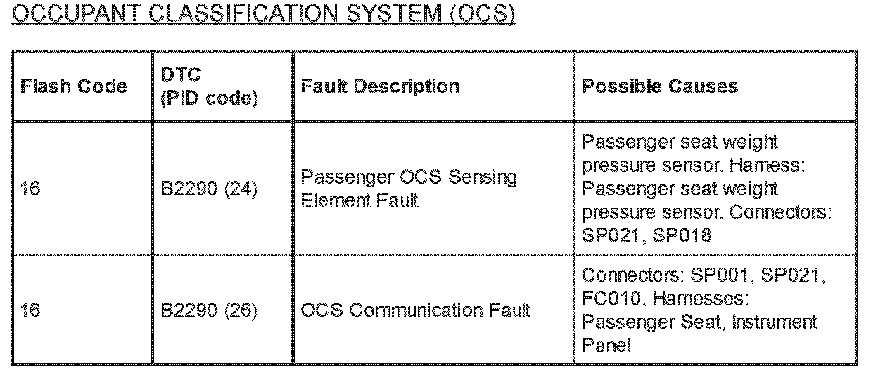 If a fault is identified within the Occupancy Classification System (OCS) Module, passenger seat weight sensor, or passenger seat weight sensor harness, ALL of these components MUST be replaced as a complete kit.