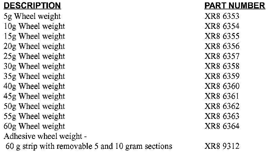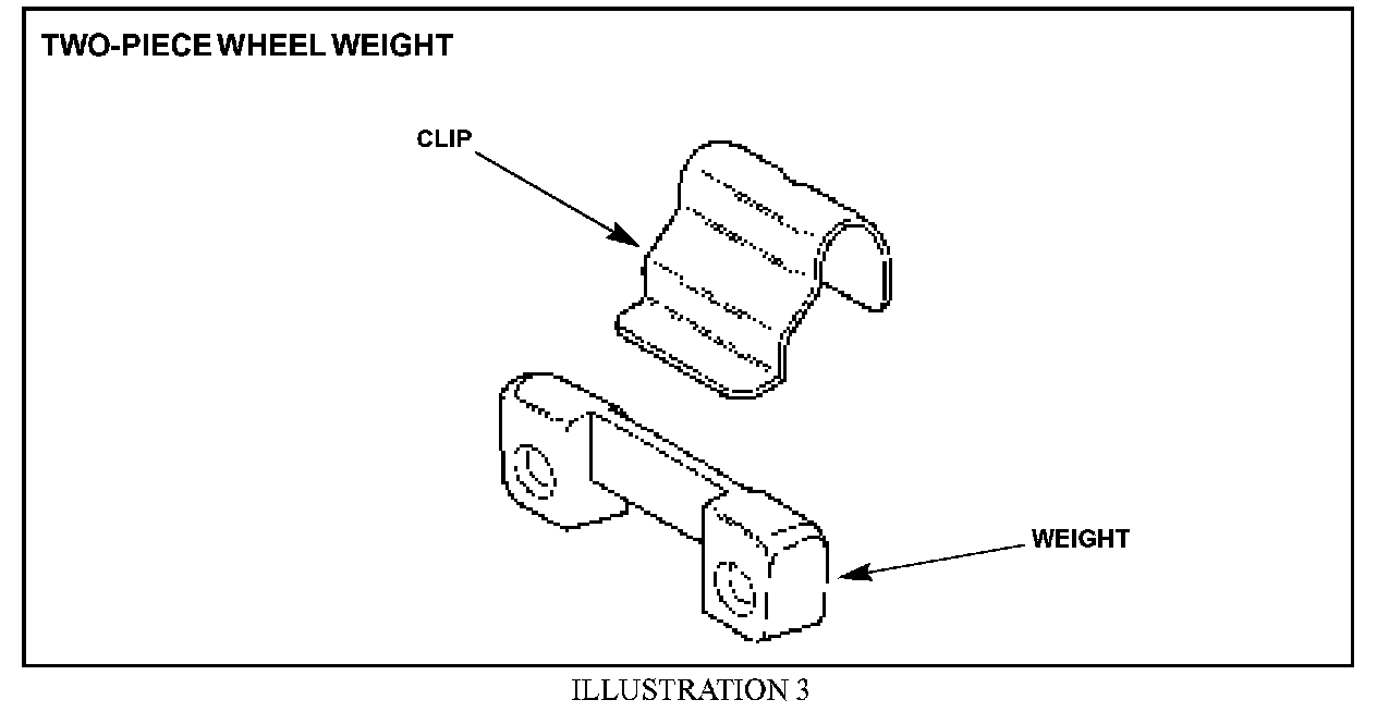 For rim mounted wheel weights, use only Jaguar specification two piece clip-on wheel weights (Illustration 3). Jaguar Cars recommends the use of a compression tool weights. *This tool (available through SPX-OTC) prevents accidental damage to the rim and deformation of the wheel weight clip.*