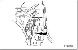 9. If earlier PVC water shedder is installed, route glass lift motor link lead through penetration and remove water shedder from body.