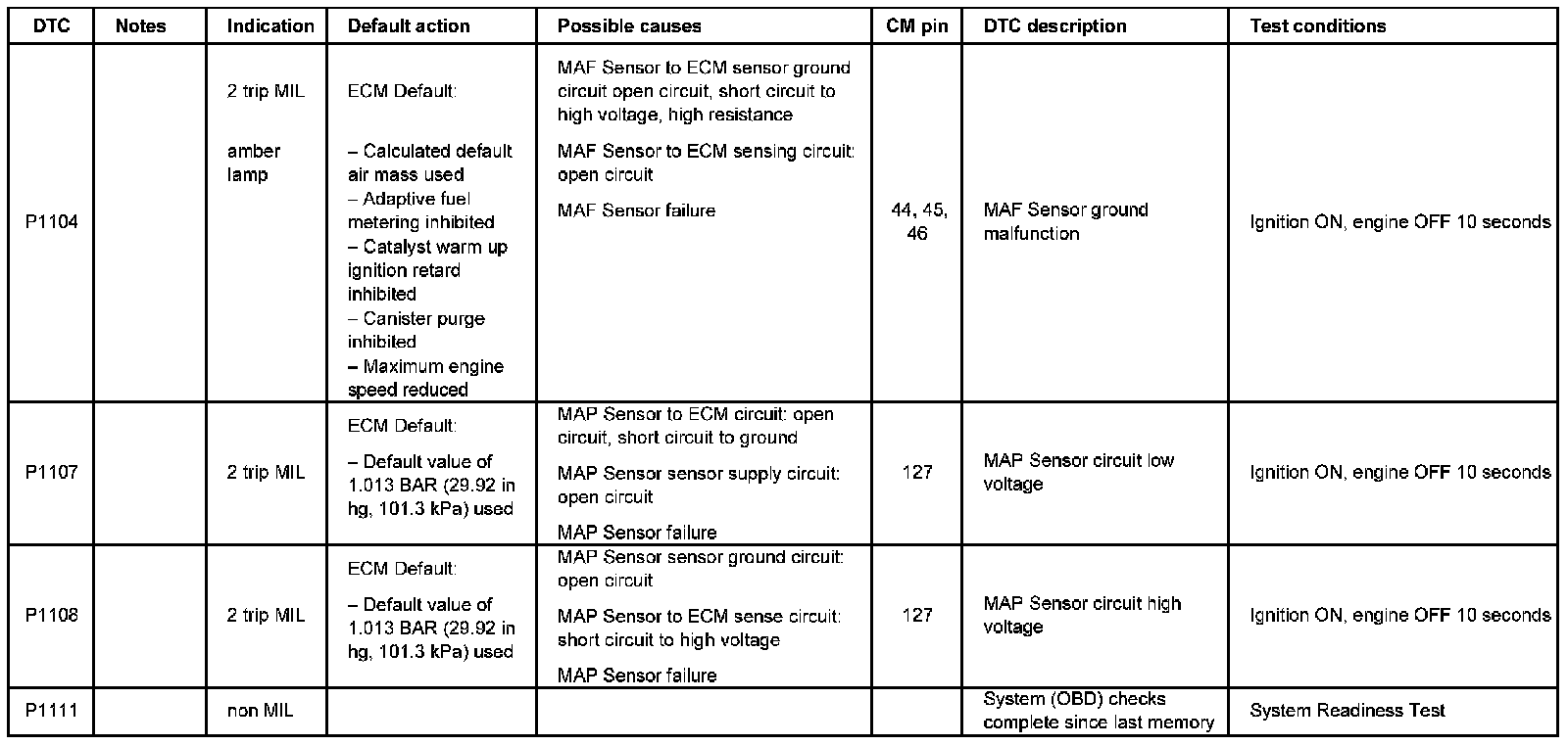 DTC P1104 - P1111: