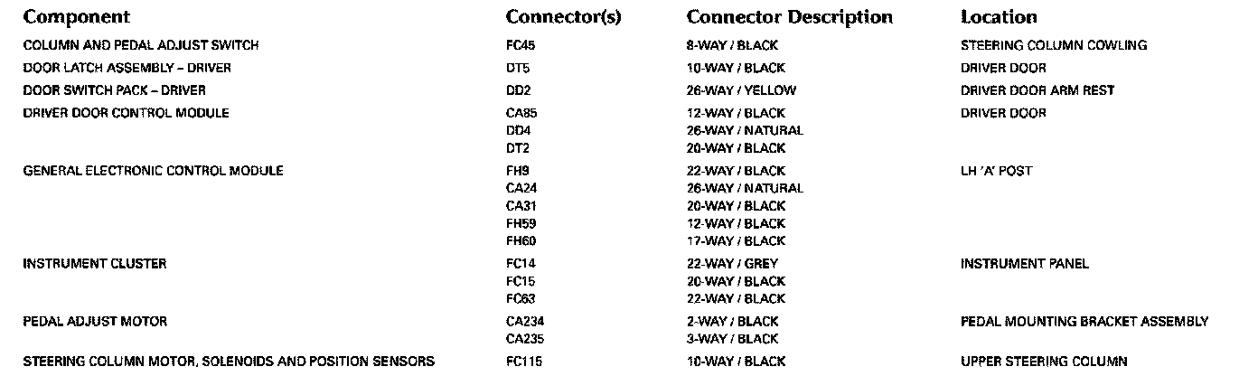 For detailed informations and illustrations regarding the location and identification of control modules pins, refer to Vehicle/Diagrams/Connector Views. Connector Views