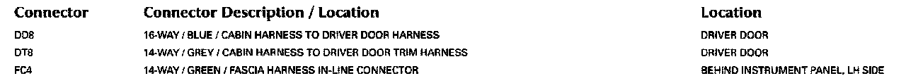 Refer to Vehicle/Locations for detailed information and illustrations regarding the location and identification of harnesses, relays, grounds and control modules. Locations