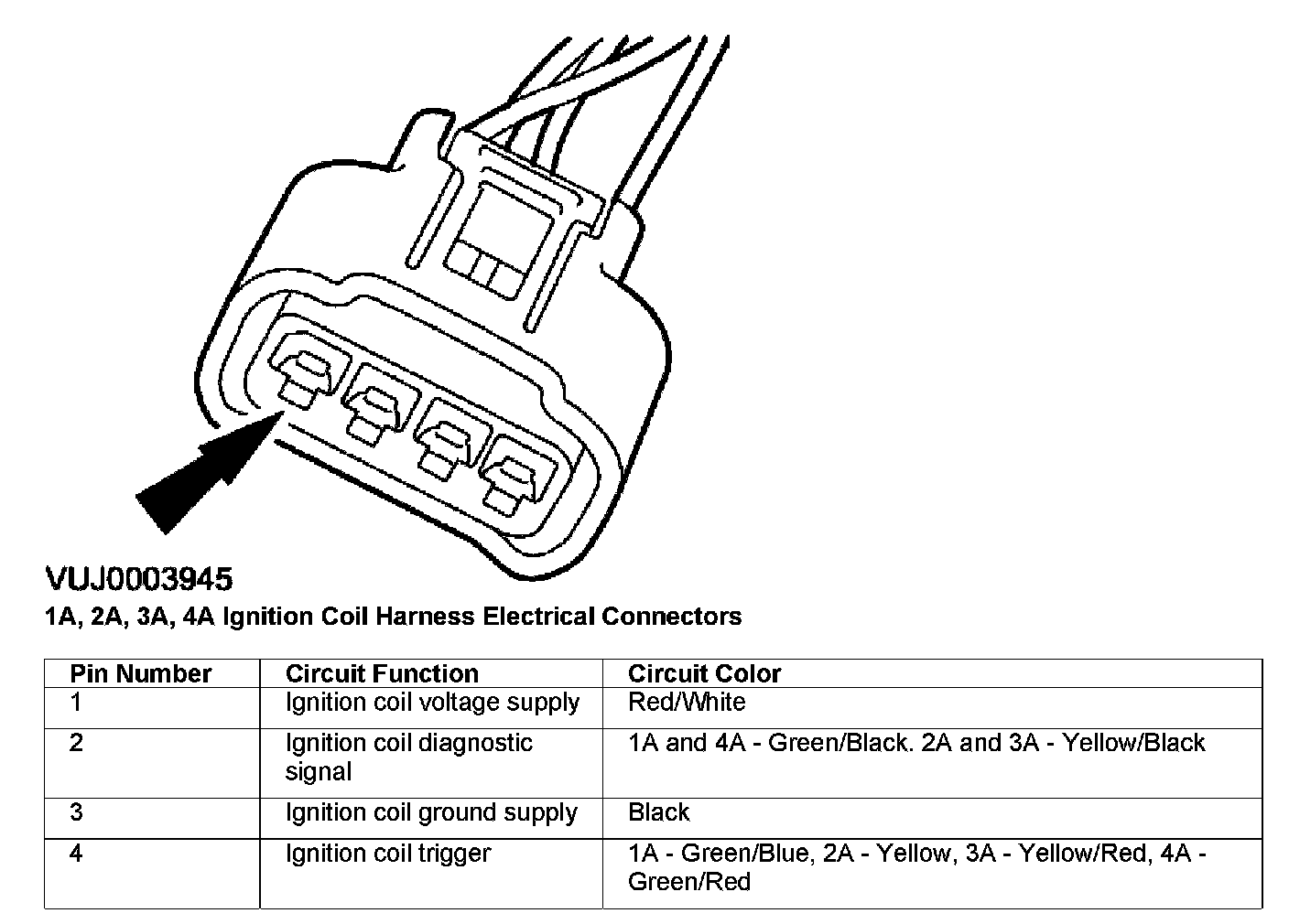 1A, 2A, 3A, 4A, Ignition Coil Harness Electrical Connectors: