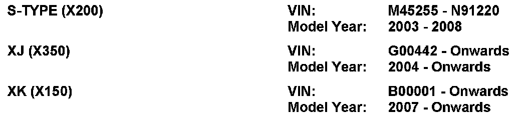 MODEL: S-TYPE, XJ, XK
