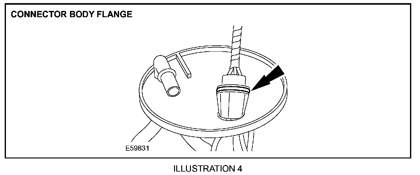 7. Depress the retaining tangs of the connector body and release the connector from the flange (Illustration 3).