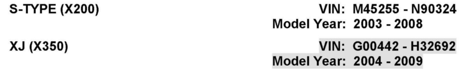 AFFECTED VEHICLE RANGE