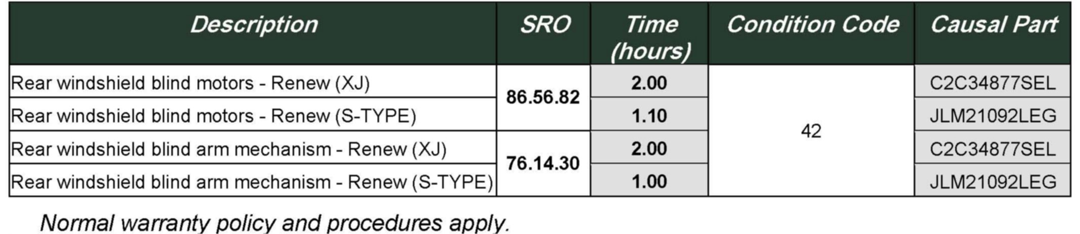 The rear windshield blind motor and arm mechanism are now available as separate serviceable parts. In the event of one of the following conditions, replacement of the complete rear windshield blind assembly is no longer necessary: