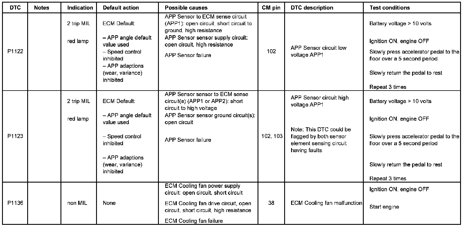 DTC P1122 - P1136: