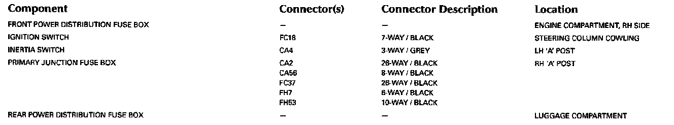 For detailed informations and illustrations regarding the location and identification of control modules pins, refer to Vehicle/Diagrams/Connector Views. Connector Views
