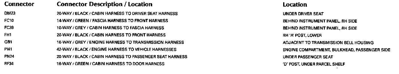 Refer to Vehicle/Locations for detailed information and illustrations regarding the location and identification of harnesses, relays, grounds and control modules. Locations