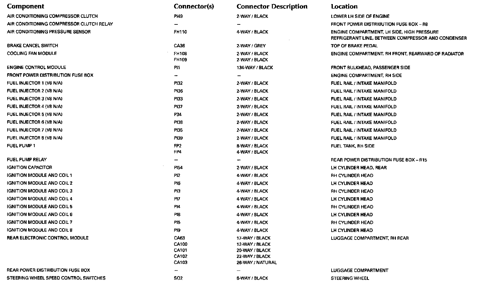 Refer to Vehicle/Locations for detailed information and illustrations regarding the location and identification of harnesses, relays, grounds and control modules. Locations