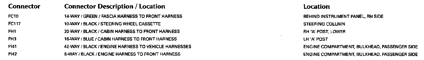 For detailed informations and illustrations regarding the location and identification of control modules pins, refer to Vehicle/Diagrams/Connector Views. Connector Views