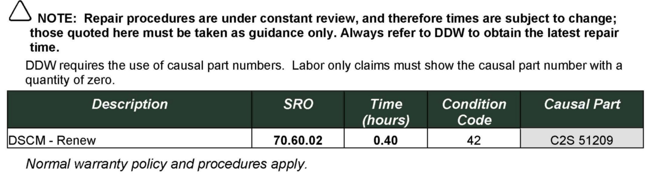 Should a customer express concern and all conditions have been confirmed, refer to the Repair Procedure outlined below to install a new Dynamic Stability Control Module (DSCM).