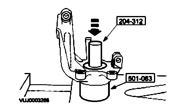 3. Using special tools, press bearing into wheel knuckle.