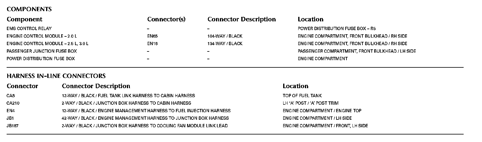 Locations: The location views for Ground Points, In-Line Harness Connectors, Harnesses, and Control Modules depicted within these diagrams can be found at Vehicle/Locations. Locations