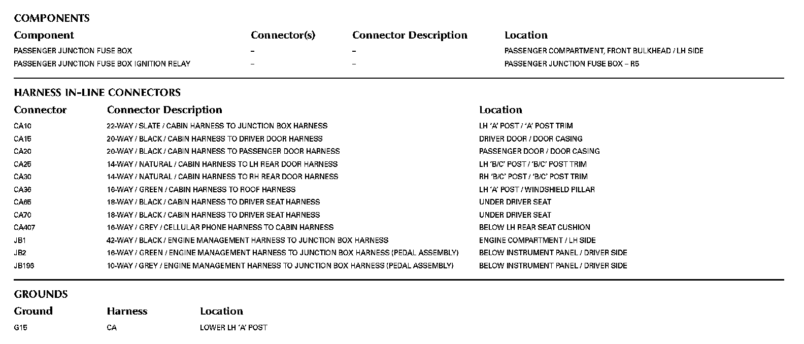 Locations: The location views for Ground Points, In-Line Harness Connectors, Harnesses, and Control Modules depicted within these diagrams can be found at Vehicle/Locations. Locations