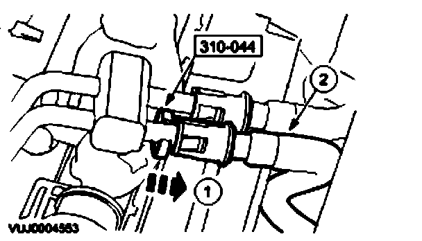 1. NOTE: Lower transmission fluid cooler tube shown, upper similar.