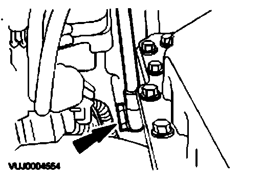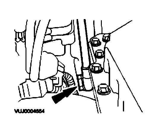 2. NOTE: Lower transmission fluid cooler tube shown, upper similar.