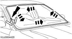 5. NOTE: Apply windshield adhesive WSS-M2G379-A6A or equivalent meeting Jaguar specification around the windshield glass edge.