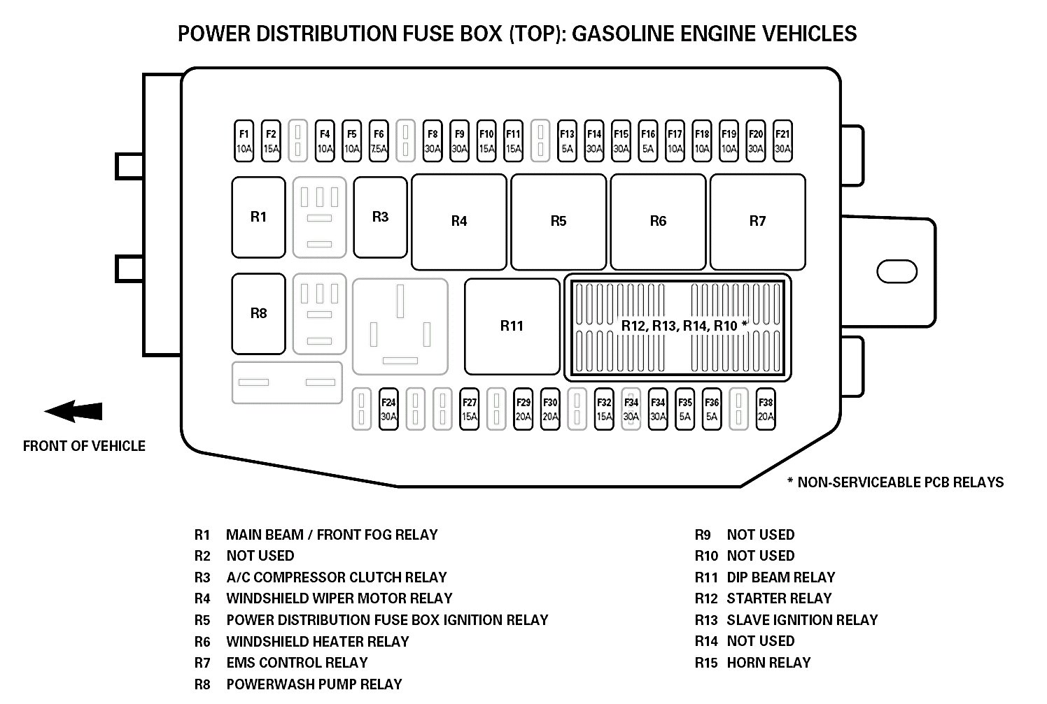 Power Distribution Fuse Box (Top)