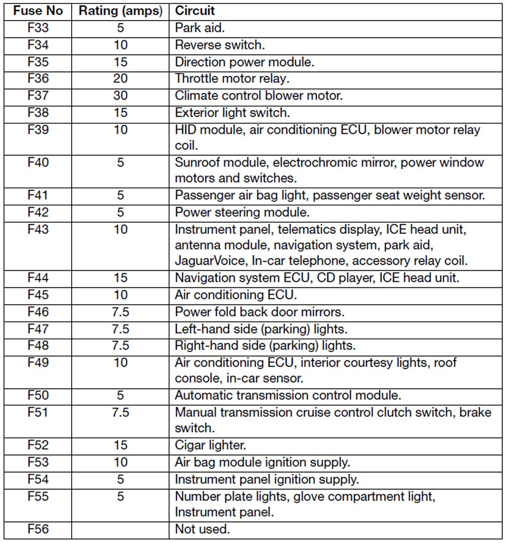 Passenger Compartment Fuses (F33 - F56)