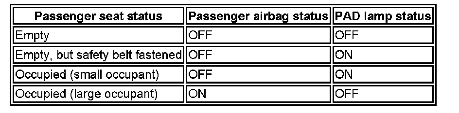 In addition to determining the best deployment of the airbags from impact data, the system uses information from the occupancy classification sensor to control the two-stage airbag used in the passenger airbag module, and relays this information to the occupants via the passenger airbag deactivation (PAD) lamp.