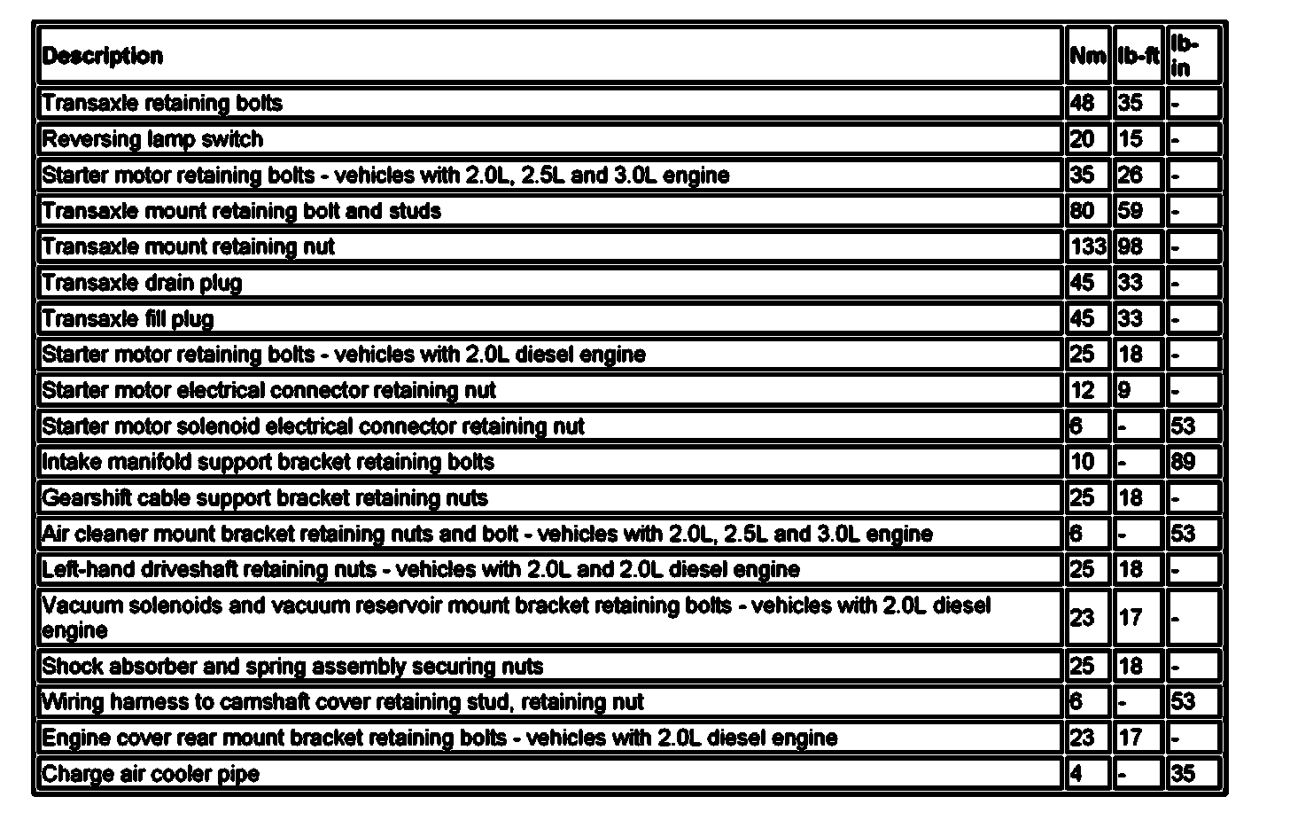 Torque Specifications: