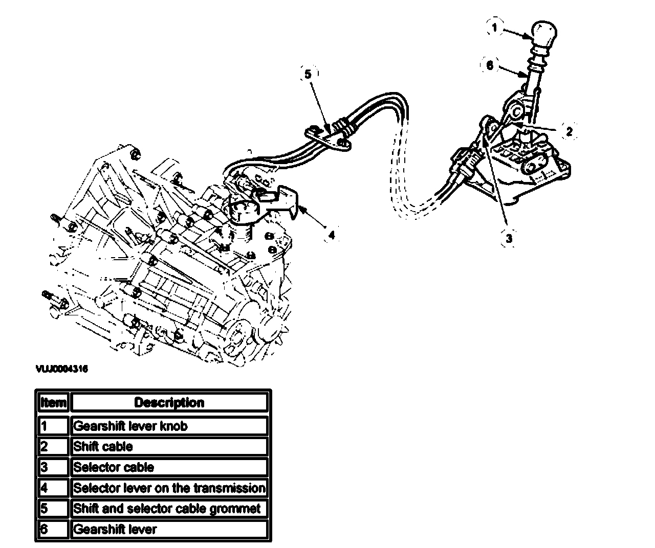 External ControlsThe shift is white and the selector cable is black. In order to detach the cables from there abutment brackets on the transmission and at the gear lever, twist the locking tab of each abutment clockwise. As the shift and selector cable have a common grommet where they pass through the floor, they can only be changed as a pair.