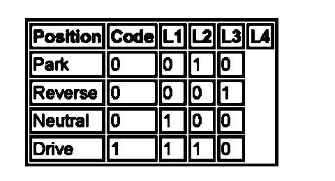 The position switch outputs a 4-bit code to the TCM, the bits being labelled L1-L4. For the transmission, the following codes are used to identify the selector position.