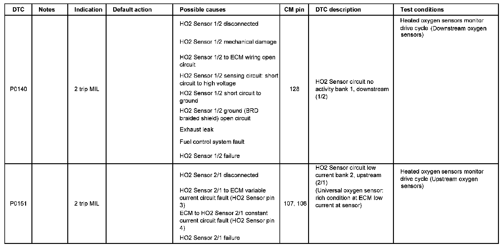 DTC P0140 - P0151: