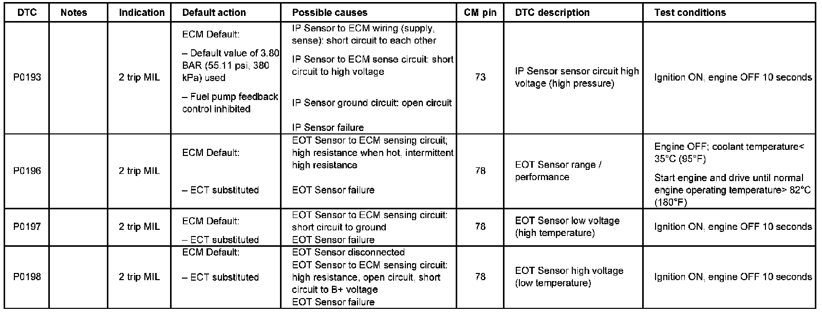 DTC P0193 - P0198: