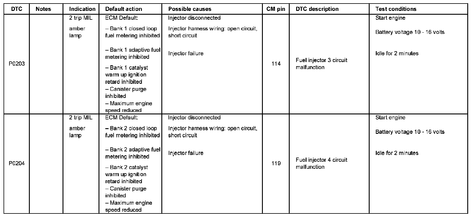 DTC P0203 - P0204: