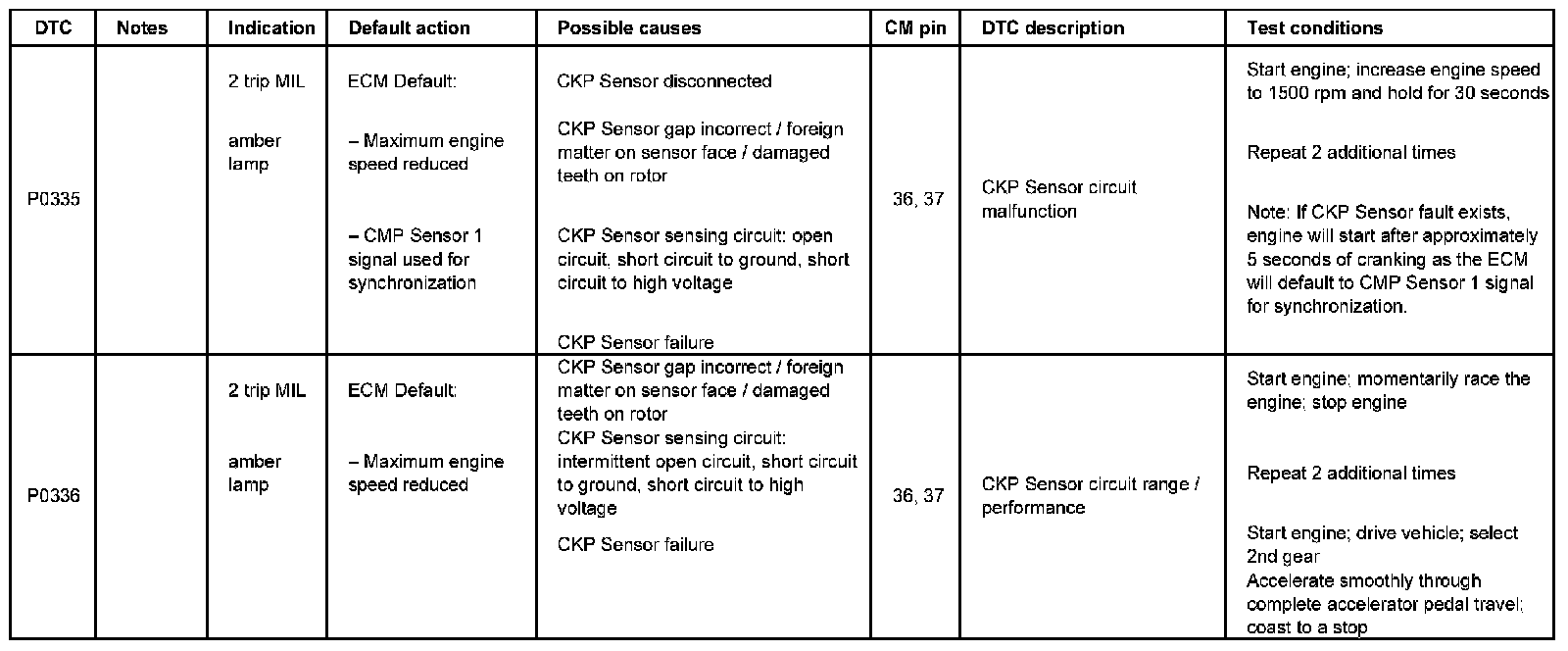 DTC P0335 - P0336: