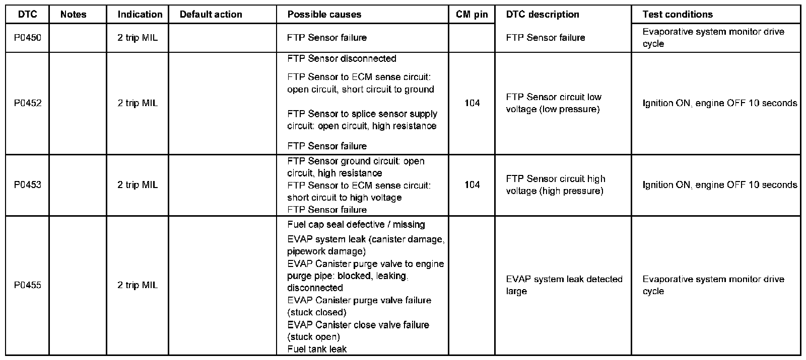 DTC P0450 - P0455: