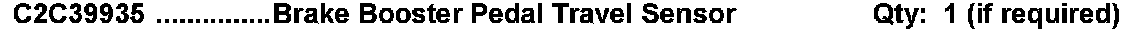 A Brake Booster Travel Sensor is now available as a serviceable part. On initial diagnosis with IDS, Diagnostic Trouble Code (DTC) B2736 - Pedal Travel Sensor Circuit Failure may be stored in the Dynamic Stability Control Module (DSCM). This fault may be caused by a faulty brake booster travel sensor.